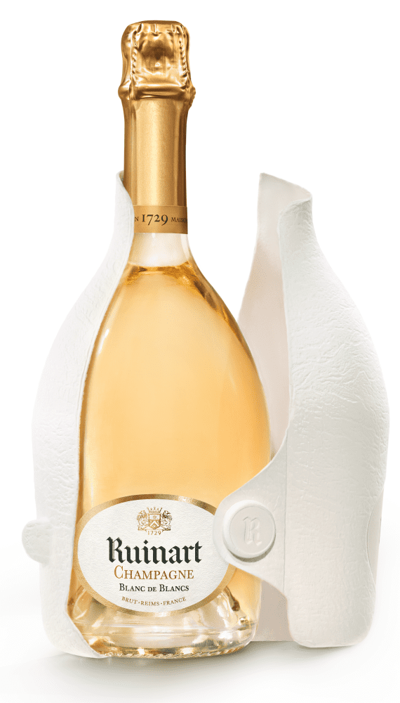 In 2021 Ruinart introduced ‘second skin’ – a 100% paper case, moulded to the shape of the world famous Ruinart bottle, protecting the wine from light strike, reducing their carbon footprint by 60% and making the item 90% lighter than its original gift box.
